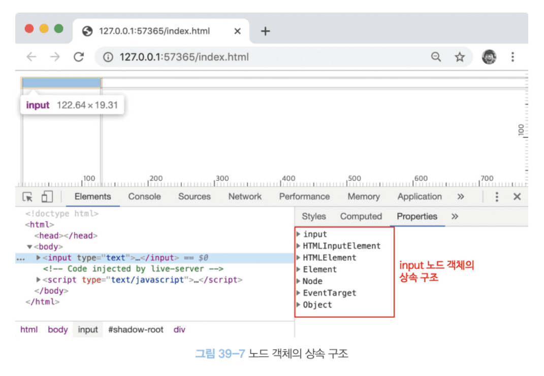 노드 객체의 상속 구조는 개발자 도구의 Elements 패널 우측의 Properties 패널에서 확인할 수 있다.