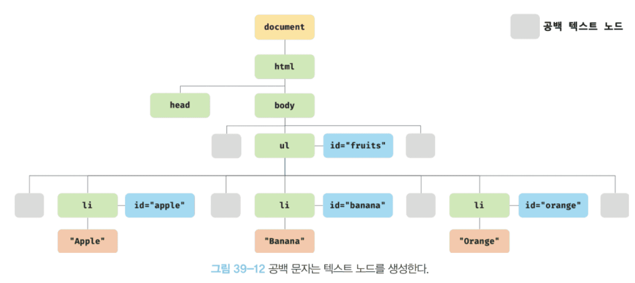 HTML 요소 사이의 스페이스, 탭, 줄바꿈 등의 공백 문자는 텍스트 노드를 생성한다. 이를 공백 텍스트 노드라 한다.
