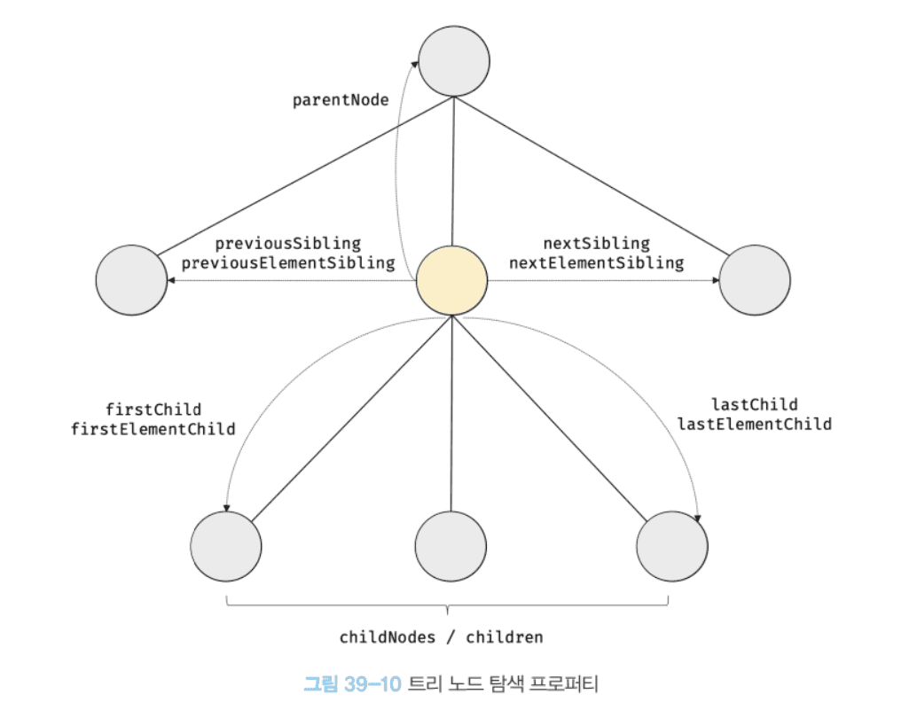 DOM 트리 상의 노드를 탐색할 수 있도록 Node, Element 인터페이스는 트리 탐색 프로퍼티를 제공한다.