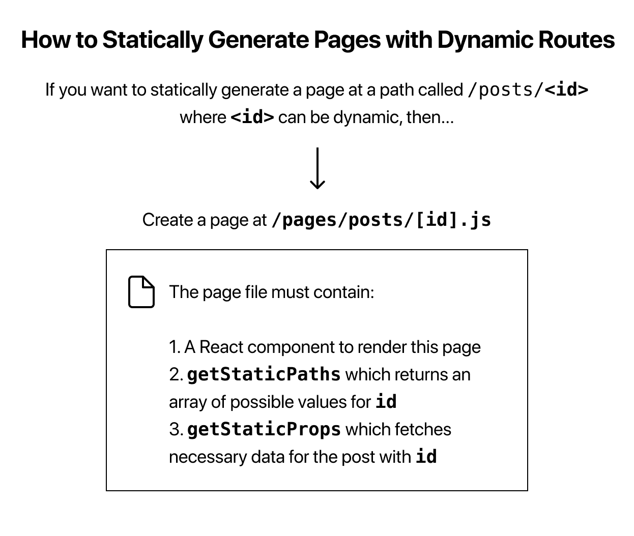 - 동적 라우트 경로로 들어갈 값에 대한 리스트를 반환해야한다.