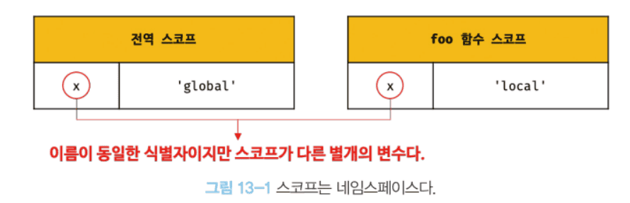console.log(x); // ②- 스코프는 식별자인 변수 이름의 충돌을 방지하여 같은 이름의 변수를 사용할 수 있게 한다.